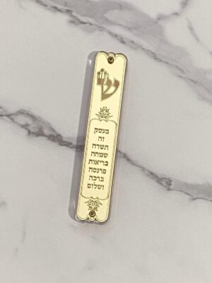 בית מזוזה מאקריל בצורה ייחודיות עם ברכת העסק בגוון זהב – דגם משה