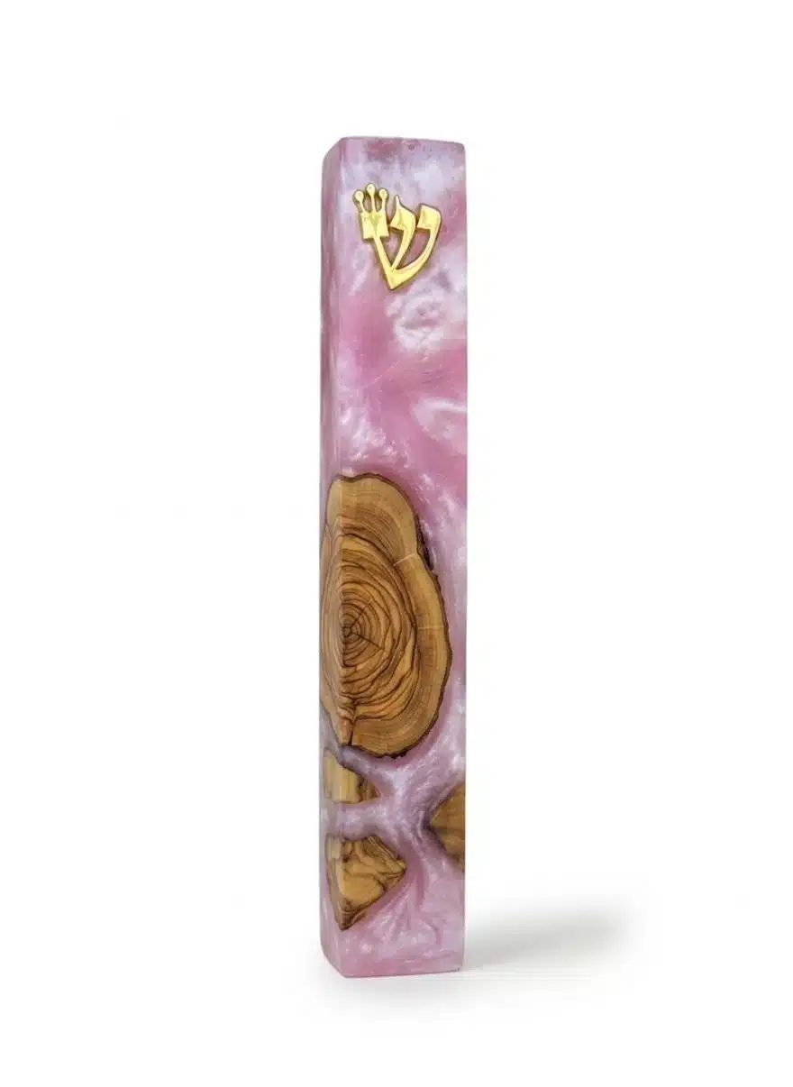 בית מזוזה בשילוב עץ ואפוקסי בצבע ורוד – בעבודת יד