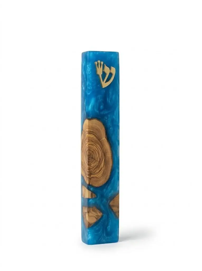 בית מזוזה ייחודי המשלב עץ טבעי ושרף אפוקסי בצבע כחול, בעבודת יד מוקפדת המעניקה לכל פריט מראה יוקרתי וייחודי. השילוב בין העץ הטבעי לבין האפוקסי הלבן יוצר עיצוב מודרני ונקי, המזוזה מגיעה עם שין מודבקת בצבע זהב, המשתלבת בצורה מושלמת בכניסה לבית, למשרד או לכל חלל.