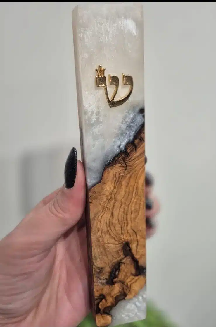 בית מזוזה ייחודי המשלב עץ טבעי ושרף אפוקסי בצבע לבן, בעבודת יד מוקפדת המעניקה לכל פריט מראה יוקרתי וייחודי. השילוב בין העץ הטבעי לבין האפוקסי הלבן יוצר עיצוב מודרני ונקי, המזוזה מגיעה עם שין מודבקת בצבע זהב, המשתלבת בצורה מושלמת בכניסה לבית, למשרד או לכל חלל.