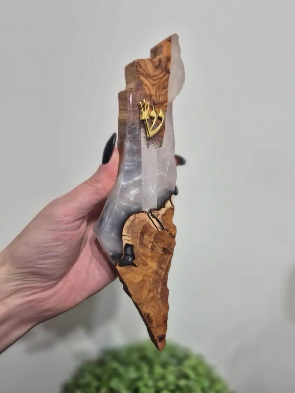 בית מזוזה ייחודי בצורת ארץ ישראל המשלב עץ טבעי ושרף אפוקסי בצבע לבן, בעבודת יד מוקפדת המעניקה לכל פריט מראה יוקרתי וייחודי. השילוב בין העץ הטבעי לבין האפוקסי הלבן יוצר עיצוב מודרני ונקי, המזוזה מגיעה עם שין מודבקת בצבע זהב, המשתלבת בצורה מושלמת בכניסה לבית, למשרד או לכל חלל.